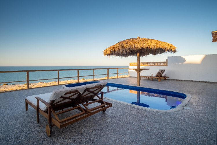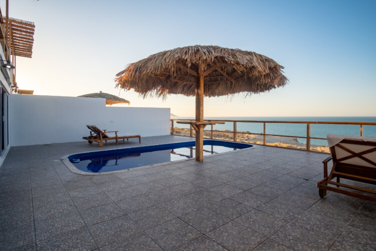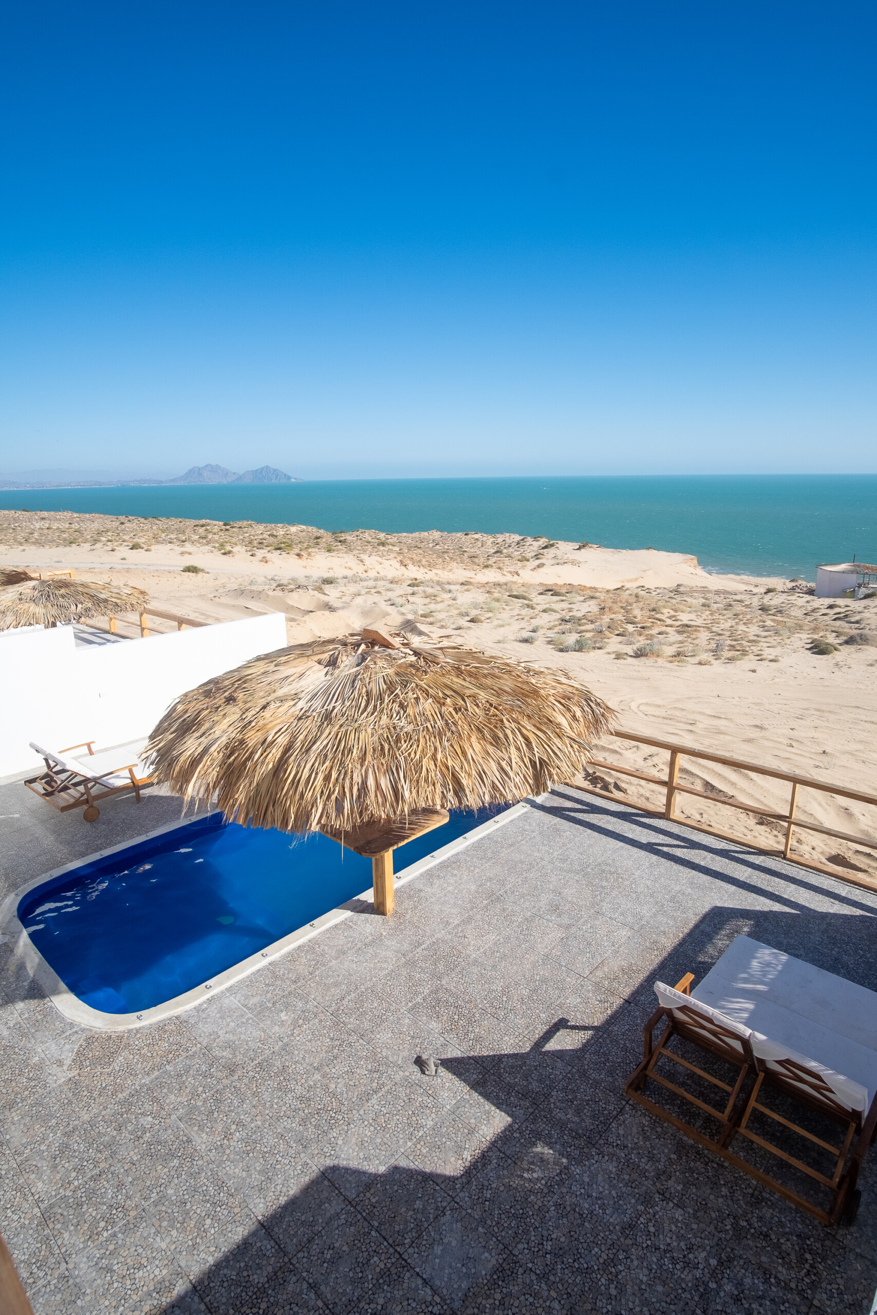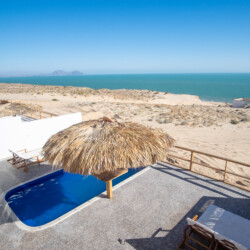 The backyard of Desert Dunes by the Sea is a true oasis, with a private pool surrounded by palapas for shade and stunning ocean views. With plenty of parking available, you can bring all your large toys, like boats or jet skis, for even more fun in the sun.
